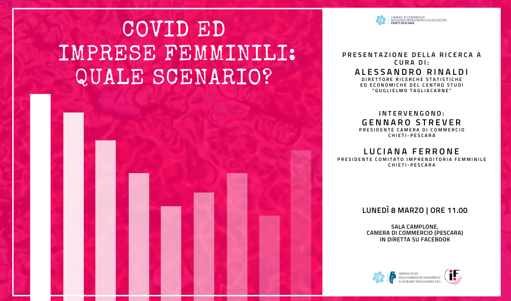 “Come Centro studi del Sistema camerale con questa iniziativa siamo lieti di inaugurare una collaborazione continuativa con la Camera di commercio di Chieti Pescara sui temi della diffusione di informazione economica, a partire dall’imprenditoria femminile”. Lo sottolinea il direttore delle ricerche del Centro Studi delle Camere di commercio Guglielmo Tagliacarne, Alessandro Rinaldi, che aggiunge “le imprese “rosa”, già rilevanti su scala nazionale, hanno un peso ancora più incisivo sul tessuto imprenditoriale di questo territorio (26,4%, contro il 22,0% Italia), ma hanno anche accusato in misura più accentuata gli effetti della crisi pandemica, perdendo nel 2020 ben un quarto delle iscrizioni d’impresa verificate a Chieti e Pescara nel 2019 (-25,1% contro -21,0%).”