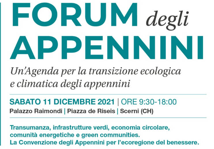 La Camera di Commercio Chieti Pescara collabora all'organizzazione del FORUM degli APPENNINI, evento nazionale promosso da Legambiente Abruzzo, in programma sabato 11 dicembre dalle 9:30 alle 18:00, a Scerni (Ch).