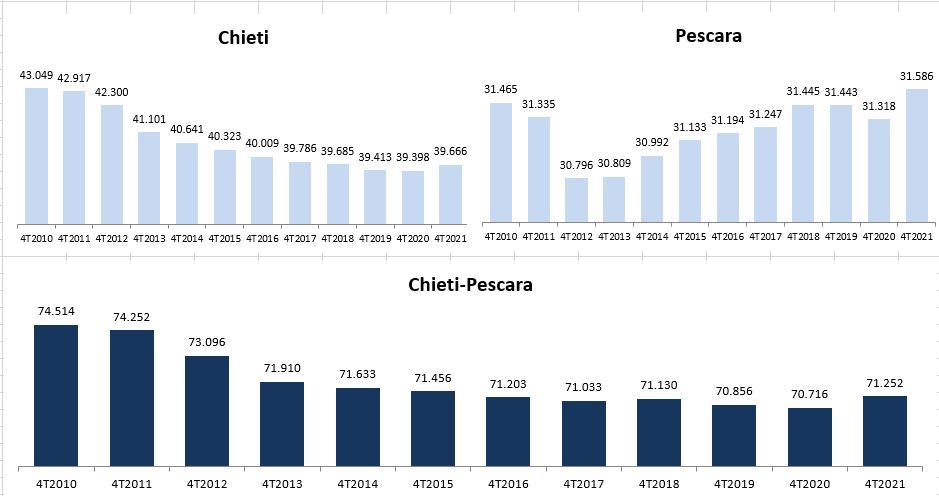 E’questo il dato più importante che emerge dall’analisi commissionata dalla Camera di Commercio Chieti Pescara al Centro Studi “Guglielmo Tagliacarne” con il quale l’ente ha siglato, ad inizio anno, un accordo per ricevere rapporti aggiornati sull’andamento economico delle due province.