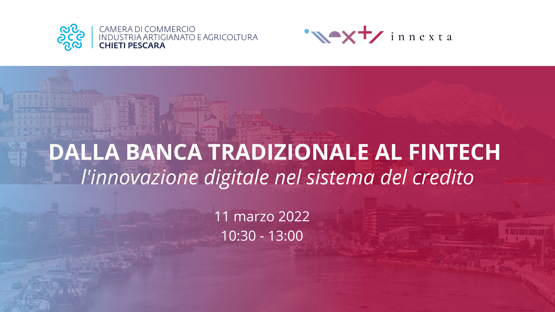 Venerdì 11 marzo, dalle 10:30 alle 13:00, si terrà il terzo ed ultimo appuntamento del ciclo di incontri online che la Camera di Commercio Chieti Pescara, in collaborazione con INNEXTA - Consorzio Camerale per il Credito e la Finanza, ha organizzato per fornire un quadro degli strumenti Fintech a disposizione delle imprese per la competitività e lo sviluppo.