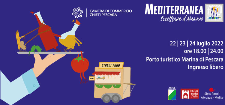 Tra le portate principali, i cooking show nel padiglione: venerdì 22 luglio con l’associazione “Chef in movimento – cibo, turismo e manualità” a cura dei talentuosi chef dell’associazione provinciale cuochi Pescara; sabato 23 luglio, show cooking a cura di Tracy Eboigbodin, la vincitrice della 11^ edizione di Masterchef Italia che interpreta le specialità abruzzesi in chiave moderna; dulcis in fundo, tre performance del maestro pasticciere Federico Anzellotti.