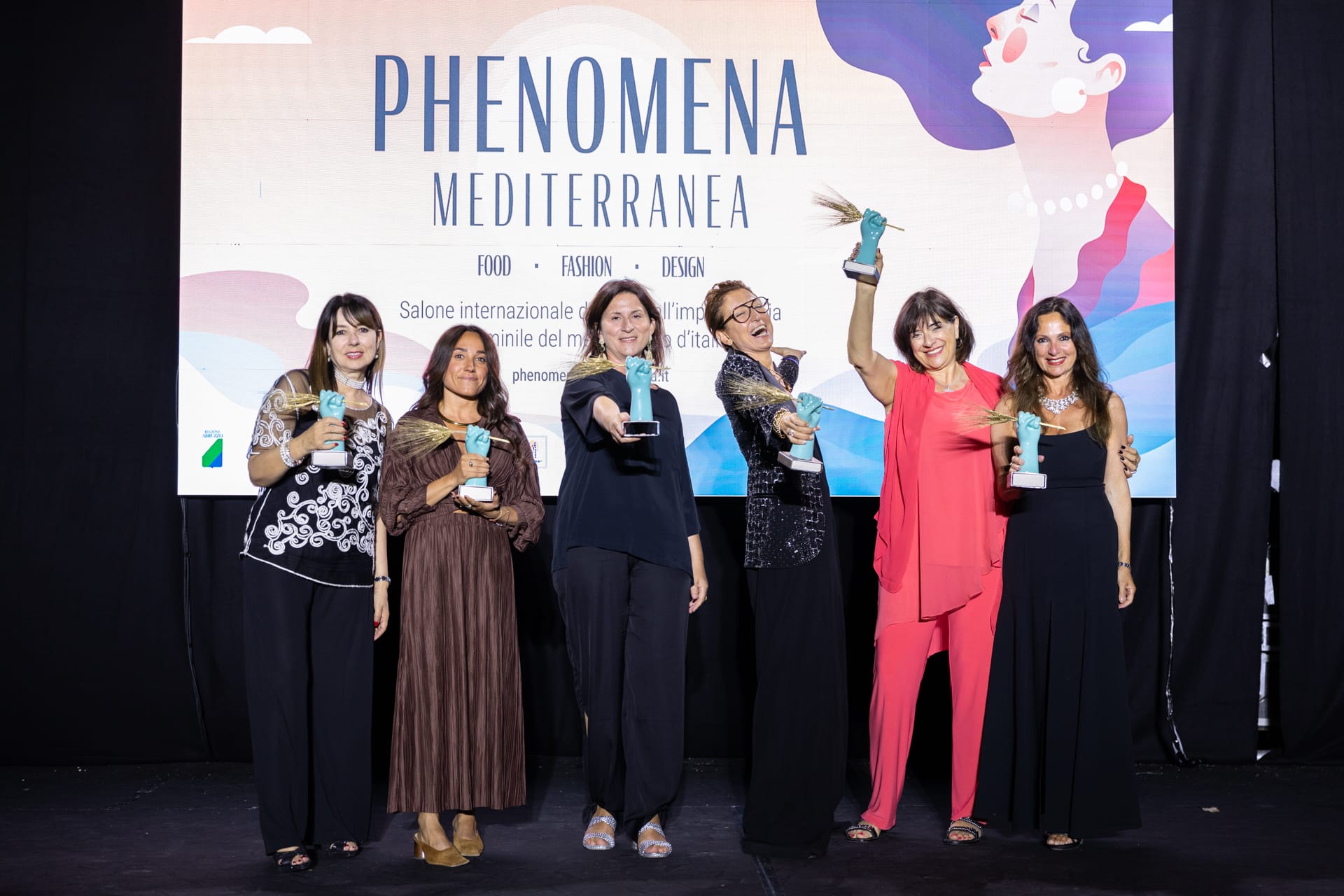 Sul palco del porto turistico di Pescara - dove fino a questa sera sarà aperto al pubblico il PalaBecci che vedrà in esposizione le creazioni e i prodotti agroalimentari di 38 imprenditrici - sono state protagoniste sei “phenomene” figlie del Sud, di cui tre individuate dagli organizzati e altre tre selezionate da buyer presenti, provenienti da più parti del mondo (Emirati Arabi Uniti, Francia, Germania Giappone, Israele, Russia, Svizzera e UK). Nel corso della cerimonia di premiazione, condotta da Maurizio Vessa e Michela Zio, giornalista e ideatrice dell’evento, alle sei imprenditrici è andata la statuetta che rappresenta una mano che impugna una spiga, simbolo di fertilità, ideata dall’artista Deborah Napolitano.