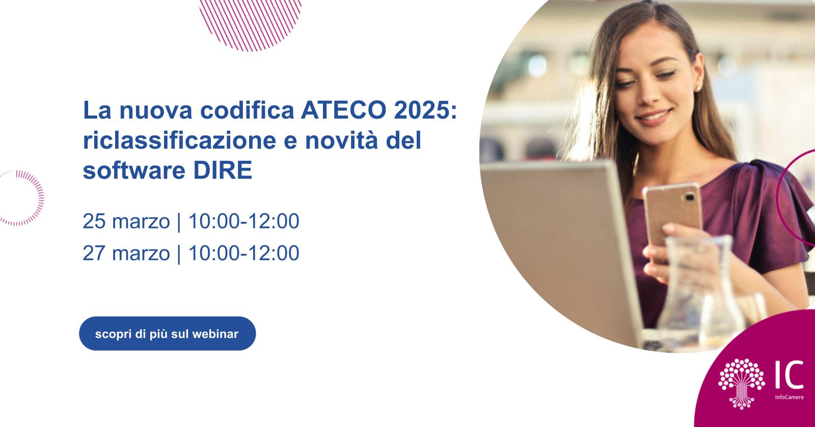 Partecipa al webinar dedicato a imprese, professionisti e associazioni per scoprire cosa comporta l'adozione della nuova codifica Ateco 2025 nel Registro Imprese.