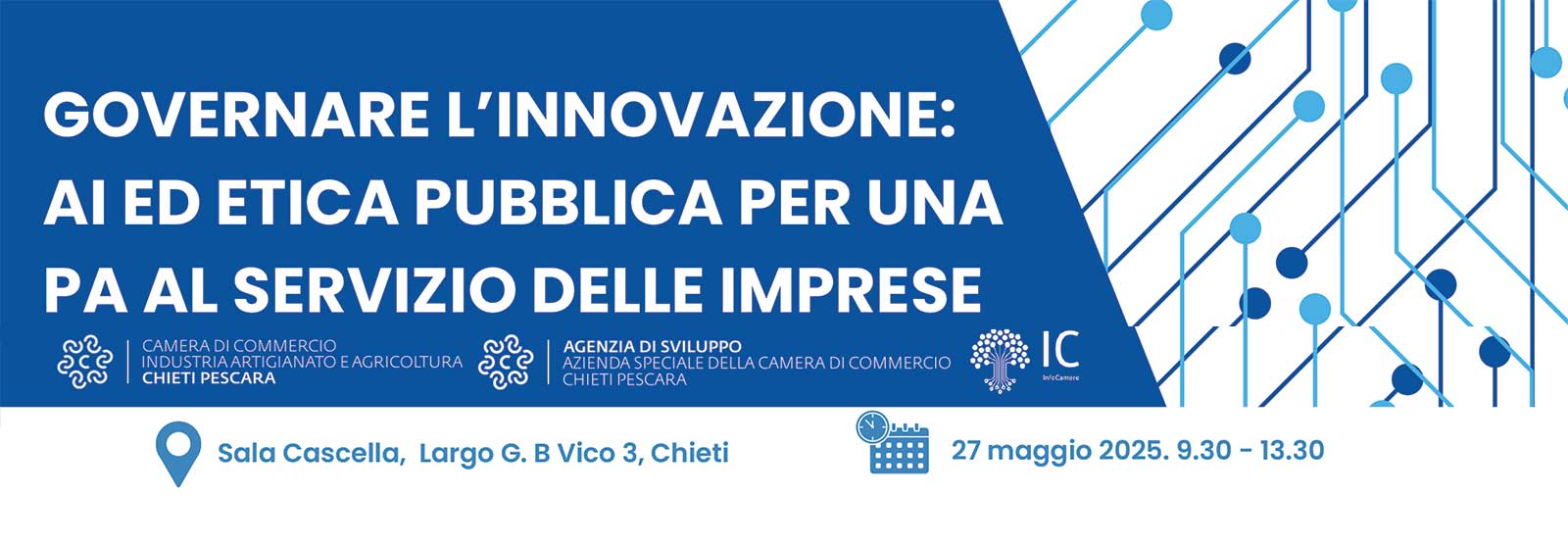 Se ne discuterà nel corso dell’evento "Governare l’innovazione: AI ed etica pubblica per una PA al servizio delle imprese", promosso dalla Camera di commercio Chieti Pescara e dalla sua Agenzia di sviluppo, che riunirà rappresentanti delle istituzioni, del mondo accademico e dell’innovazione digitale per un confronto sul futuro della pubblica amministrazione nell’era dell’Intelligenza Artificiale. Un’occasione per riflettere sull' uso consapevole delle nuove tecnologie e sulle opportunità aperte dall'intelligenza artificiale nel campo dei servizi alle imprese e al territorio.