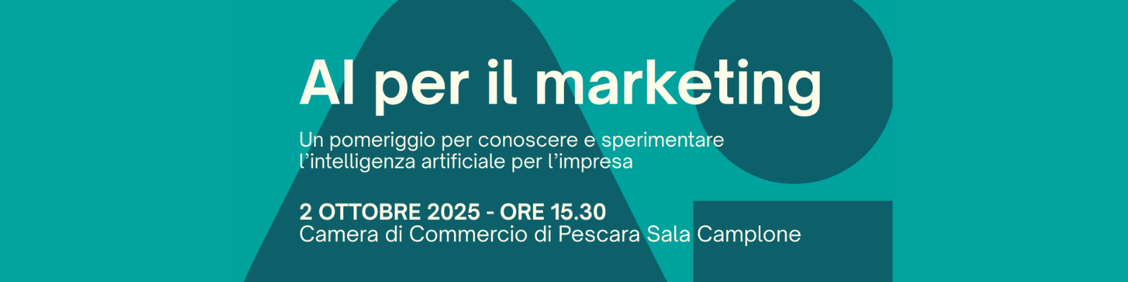 Giovedì 2 ottobre alle ore 15:30 nella Sala Camplone della Camera di Commercio Chieti Pescara (Via Conte di Ruvo 2 – Pescara) si terrà un seminario dal titolo: “AI – Intelligenza Artificiale per il marketing”.